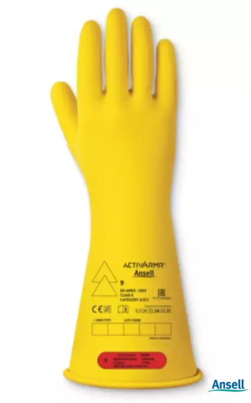Isolerende handschoenen voor elektriciens van Ansell zijn gemaakt van 100% natuurrubberlatex en het zelf ontwikkelde, milieuvriendelijke coatingproces maakt ze uiterst soepel en beweeglijk. Door de ergonomische vormgeving van een hand in rust en de niet-gespreide vingers worden de handen minder snel moe. De ruime manchet met gerolde boord biedt plaats aan kleding De gladde afwerking maakt het gemakkelijk om de handschoenen aan en uit te trekken. Dikte 1mm, lengte 350mm. Maten: 8-11 Gecertificeerd voor bescherming tegen zuren (Categorie A), ozon (Categorie Z) en zeer lage temperaturen (Categorie C). Klasse 0 Geel beschermt tegen vlambogen van Klasse 1 volgens EN 61482-1-2².