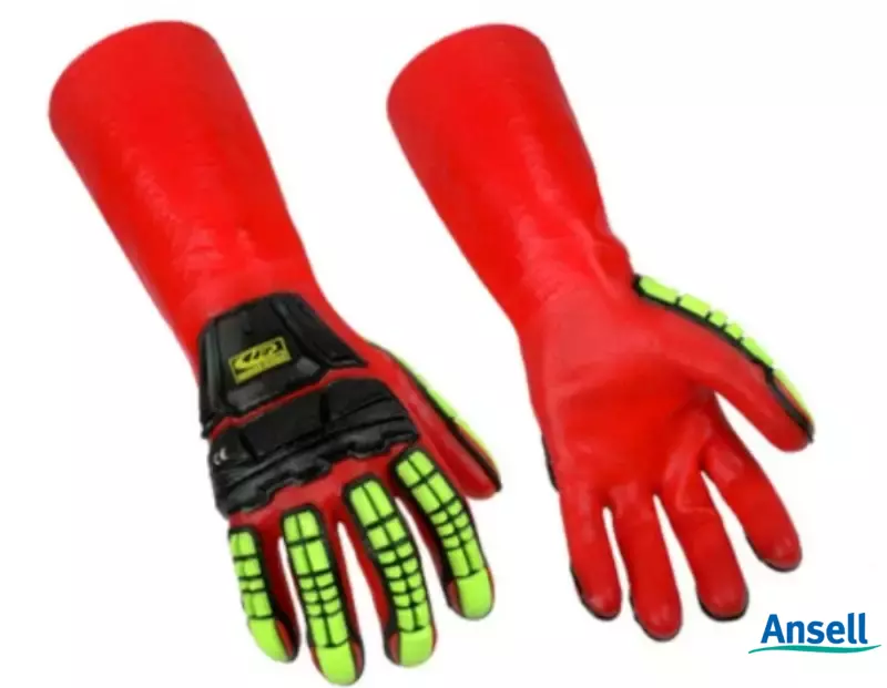 Chemisch en snijbestendige handschoen met TPR-stootbescherming bovenop de hand en over de hele lengte van de vingers. Snijbestendige drager die 360° snijbescherming biedt over de hele hand. Waterdichte en duurzame PVC coating met reliëf voor chemische weerstand en een betere grip. Maten: 8,10 en 12.