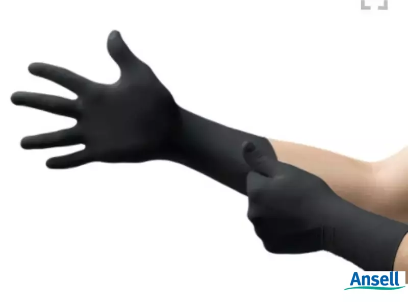 Zwarte poedervrije wegwerphandschoen gemaakt van zacht nitril met verlengde manchet voor extra bescherming van de pols en onderarm. Volledig voorzien van reliëf voor een betrouwbare en consistente grip. Siliconen en latexvrij en antistatisch. De zwarte kleur maakt het makkelijk om te zien of de handen in contact zijn geweest met potentieel gevaarlijke poeders. De handschoen is getest op fentalyl en maagzuur (braaksel) waarbij een gevaarlijke overdois uit de praktijk is gesimuleerd. Geschikt voor gebruik in de voedingsindustrie. Lengte: 300mm, palmdikte: 0,14mm, vingerdikte: 0,17mm. Maten: (S) 6,5/7 – (XXL) 10,5/11.