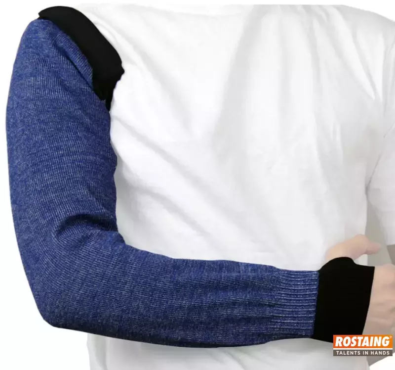 Snij- en hittebestendige armbeschermer 60 cm met duimopeningen velcro sluiting.Ergonomisch gebreid. Beschermt gedurende 21 sec tegen 100°C contacthitte (test rapport).