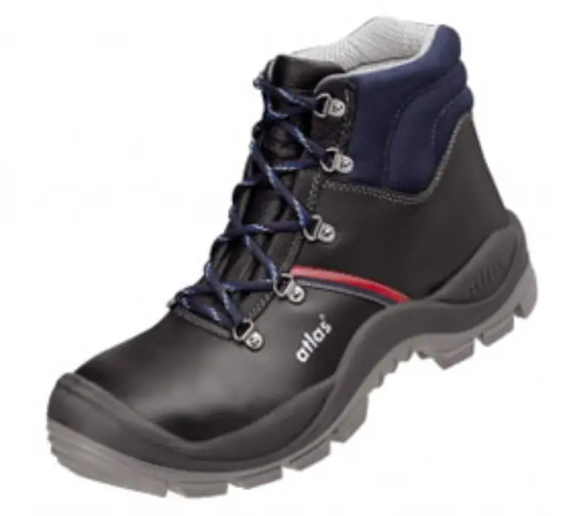 Hoge schoen anatomic bau 500 in zwart rundsnerfleder, voorzien van stalen neus en stalen zool en een overneus. Bestaat ook zonder overneus in maten 36-38. Voorzien van een diep zoolprofiel. Beschikbaar in maten 39-47, wijdten 10 en 12.
