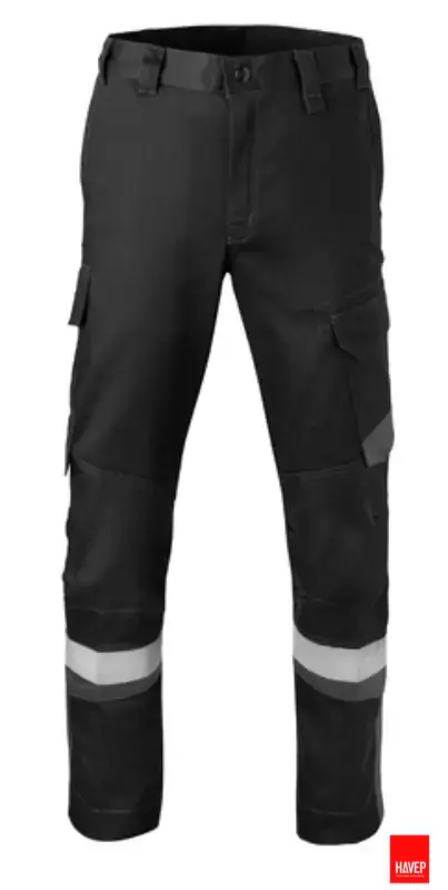 Werkbroek met verdekte ritssluiting, 2 ingezette zijzakken, 2 achterzakken met klep, duimstokzak met klep, dijbeenzak met klep, knie zakken, extra inzet bij kruis ter voorkoming van uitscheuring, reflectieband. Kwaliteit: 80%/19%/1% katoen/polyester/carbon, 4/1 satijnbinding + DWR, 280 gr/m2. Beschikbare maten: 44-66, lengtematen 14-57 en buikmaten 24-29. Beschikbare kleuren: Zwart/grijs, korenblauwe/marine, grijs/rood en grijs/blauw.