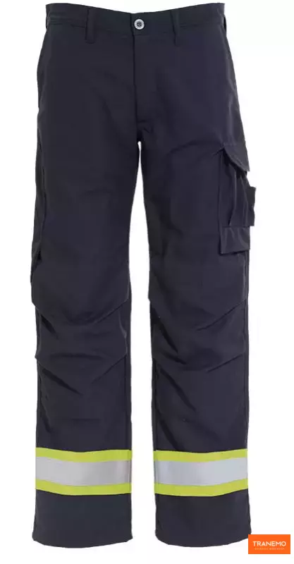 Vlamvertragende werkbroek voorzien van een dunne voering, waardoor deze voldoet aan vlamboog IEC 61482-2 klasse 2. Achterzakken met klep. Cargozak met klep, telefoonzak en verdekte sleutelring. Liniaalzak. Voorgevormde knieën met in hoogte verstelbare knievakken aan de binnenzijde. Geheel metaalvrij. Reflectie op de pijpen. Artikel wordt geproduceerd op bestelling. Kwaliteit: Tera TX, 260 g/m², Beschikbare kleuren: Fluo geel / marine. Beschikbare maten: 44-46, 146-156, 24-30.