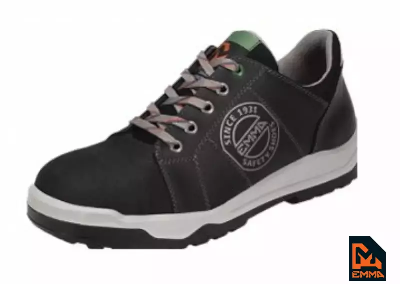 Lage schoen in nubuckleder met synthetische antiperforatiezool met een kunststof beschermneus. Voorzien van een Hydro-Tec textiel voering bestand tegen abrasie. Zool in PU/PU. Antibacteriële inlegzool gelamineerd met textiel. Maten: D/XD, 39 – 48.