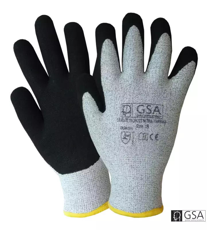 Snijbestendige naadloze winterhandschoen (HPPE) met zwarte nitril coating. Gevoerd met een warme winter lining. Deze handschoen com bineert een goede vingergevoeligheid met een hoge snijbestendigheid en bescherming tegen koude. Maten: 8/9/10/11. Gekeurd volgens EN388:2016: 4.5.4.2, ISO 13997: Klasse D en EN511: X.2.X
