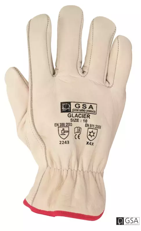 Winterhandschoen (beige) in rundsnerfleder. Dikke witte polyester fleece lining met hoge bescherming tegen contactkoude. Topkwaliteit, zacht, soepel leder. Voor algemene toepassingen tijdens de winter of werk in koelcellen. Beschikbaar in een zeer ruime matenreeks. Beschikbare maten: 8-12.