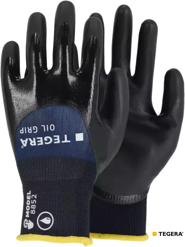 Deze handschoen biedt een uitstekende grip in droge, vochtige en licht olieachtige omgevingen. Gecoate knokkels en drievoudige coating met nitrielschuim in de handpalm, voor een degelijke oliebarrière. Voering met 18 gg-breitechniek en meer dan 90% gerecycled polyester. Touchscreen. Oeko-tex goedgekeurd.
