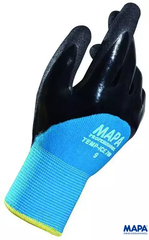 Zeer duurzame handschoenen voor langdurige werkzaamheden bij contact met koude. Dubbele nitril coating op isolerende voering.