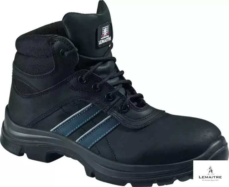 Hoge schoen S3 in waterbestendig volnerfleder, voorzien van een stalen 200J neus en synthetische antiperforatiezool. Voering in synthetische en abrasiebestendig textiel. Uitneembare, antistatische inlegzool. Zool in PU/PU, SRC anti-slip. Maten: 35-49 (L) en 41-49 (XXL).