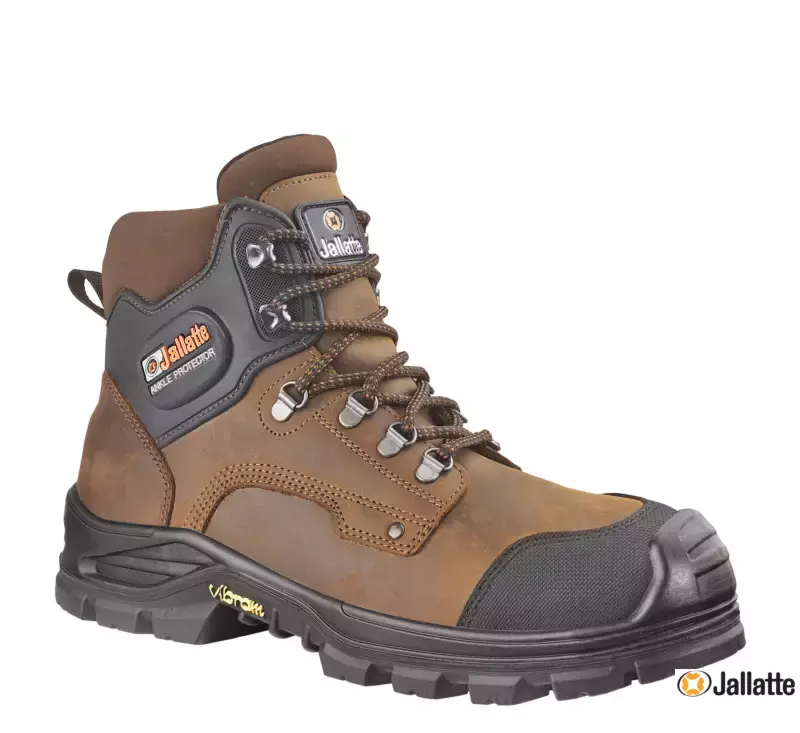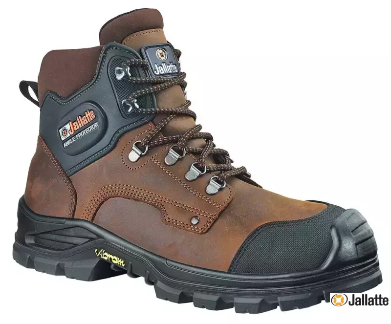 Hoge veiligheidsschoen, type outdoor, in bruin waterafstotend rundnerfleder met stalen veiligheidsneus en antiperforatiezool,overneus. Binnenvoering in 3-dimensionale stof voor optimale verluchting. De loopzool in Vibram (PU/Nitril), hittebestendig tot 300°C en bestand tegen koolwaterstof en oliën. Zelfreinigende noppen. Geschikt voor algemene industriële toepassingen en processen met extreme of langdurige hitte. Maten: 38-47. In overeenstemming met: EN ISO 20345 S3 AN HI CI HRO SRC.
