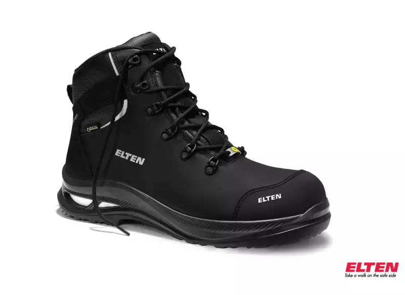 Hoge schoen in rundleder met een niet metalen antiperforatiezool, gepolsterde watertong en een kunststof 200J neus. Voorzien van een ademende voering in Gore-Tex. Zool in PU/Nitril (Wellmaxx), SRC antislip. Hele inlegzool die voldoet aan ESD normering. ESD gekeurd. Maten: 39-48.