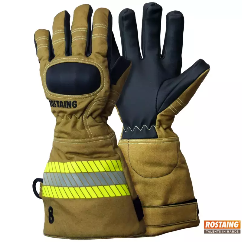 Ergonomische brandweerhandschoen, hittebestendige handpalm met siliconencoating, waterdicht en ademend Porelle-membraan, met stootbe scherming, karabijnhaak, reflecterende band. Undertech voering, optimale snijweerstand. Weerstand tegen stralingswarmte op de rug dankzij de unieke Airsystem-technologie. Blijft confortabel na het wassen.
