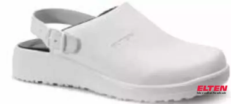 Witte klomp OB met ergonomisch design uit waterbestendig microvezel. Voering in textiel. Zool uit PU en lichte, comfortabele fleece ESD inlegzool voor maximum comfort. Met aanpasbare hielstrap. Wordt v eelvoudig gebruikt in keuken- en voedingssectoren. Maten: 35 – 42.