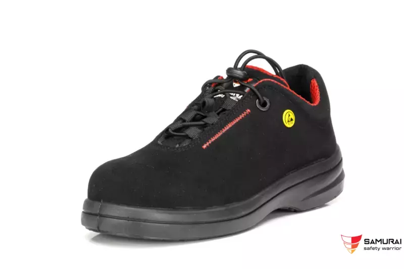 Lage damesschoen in microfiber, met een synthetische antiperforatiezool en een metalen 200J neus. Voorzien van een ademende, abrasiebestendige voering in textiel. Met een elastische veter. Zool in PU/PU, SRC antislip, bestand tegen oliën en zuren. Uitneembare inlegzool in polyurethaan met textiel laag. ESD gekeurd. Maten: 35-42.