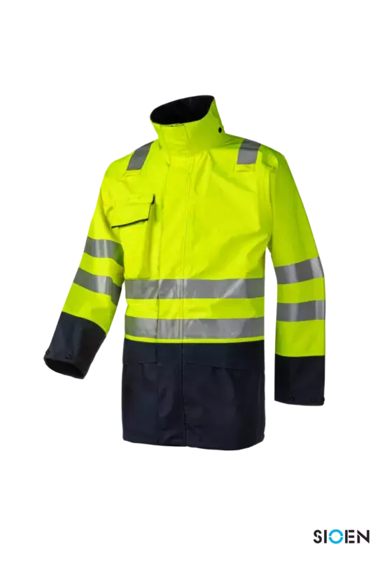 Een lichte parka die u een zeer hoog beschermingsniveau biedt, inclusief ARC-bescherming. Deze signalisatie Kaldvik regenjas is gemaakt van de nieuwe lichtgewicht (280 g / m²) Siopor® Excell stof. In dit zachte en soepele jack kunnen verschillende voeringen worden geritst. Verder heeft de Kaldvik veel praktische kenmerken zoals de mogelijkheid om een capuchon te bevestigen (apart verkrijgbaar), de mouwuiteinden te versmallen, 1 borstzak, 2 binnenzakken en een praktische ritssluiting voor het gemakkelijk openen en sluiten van de jas. Beschikbare maten: S-3XL. Beschikbare kleuren: fluo geel / marine en fluo oranje / marine. Overeenkomstig: IEC 61482-2 klasse 1, EN ISO 11612 A1.B1.C1.E1.F1., EN ISO 11611 klasse 1, EN 1149-5, EN 13034, EN ISO 20471 klasse 3., EN 343 4: 4.