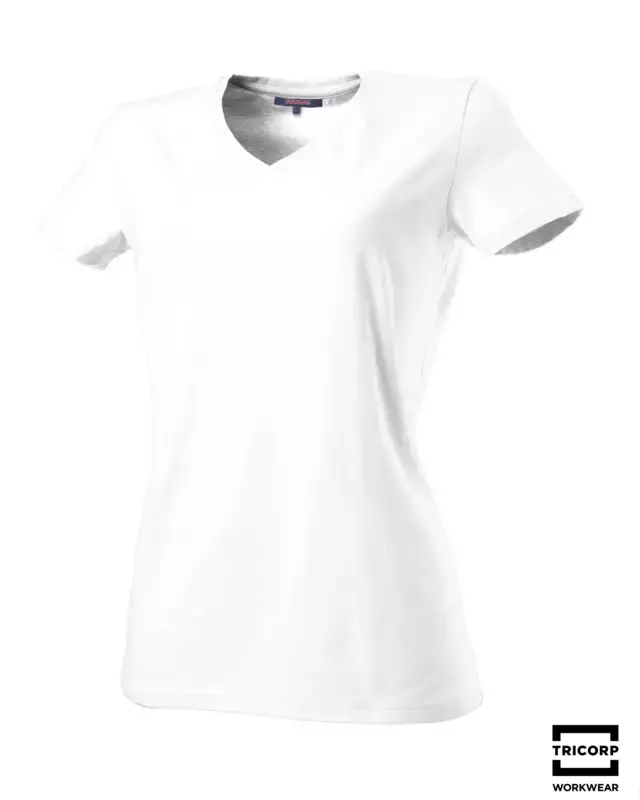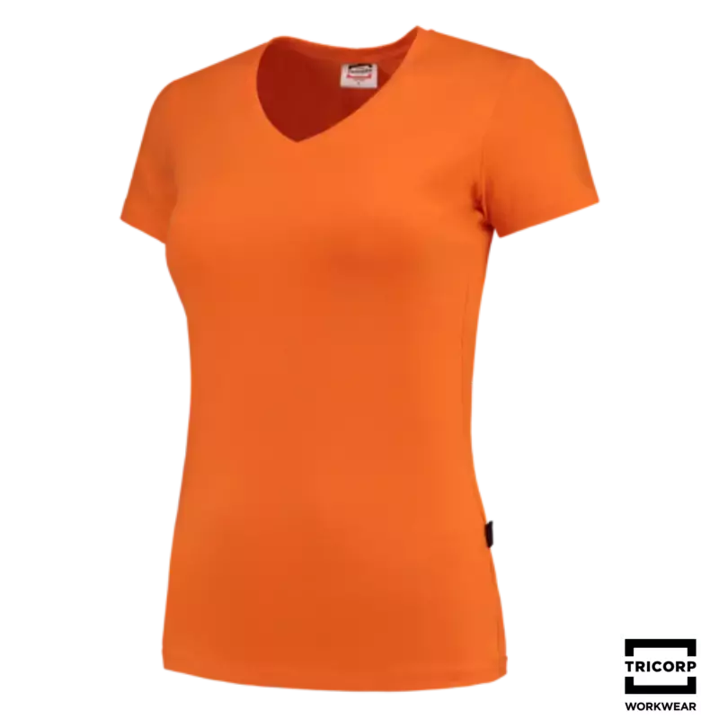 Dames t-shirt in 95% katoen/5% spandex, 190 gr/m² single jersey. Getailleerd model met extra stretch voor nog meer draagcomfort. Met slanke v-hals. Beschikbare maten: XS-3XL. Beschikbare kleuren: Limoen, Roze, Rood, Wit, Turquoise, Paars, Marine, Zwart. Voorraadartikel in zwart, XS-L.